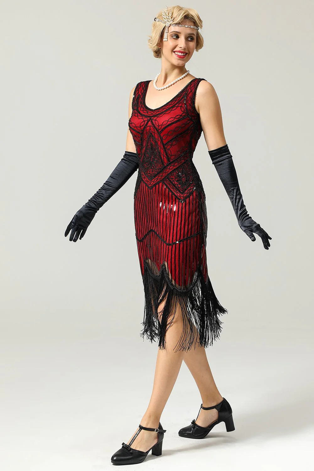 Rode en zwarte diepe V-hals Flapper jaren 1920 jurk